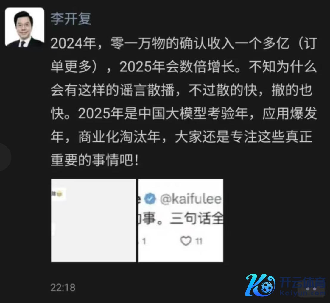 自救,还是赐与了零一万物活下去的资金。就如李开复在辟谣文中所说:“2024年,零一万物的证据收入一个多亿(订单更多),2025年会数倍增长。”